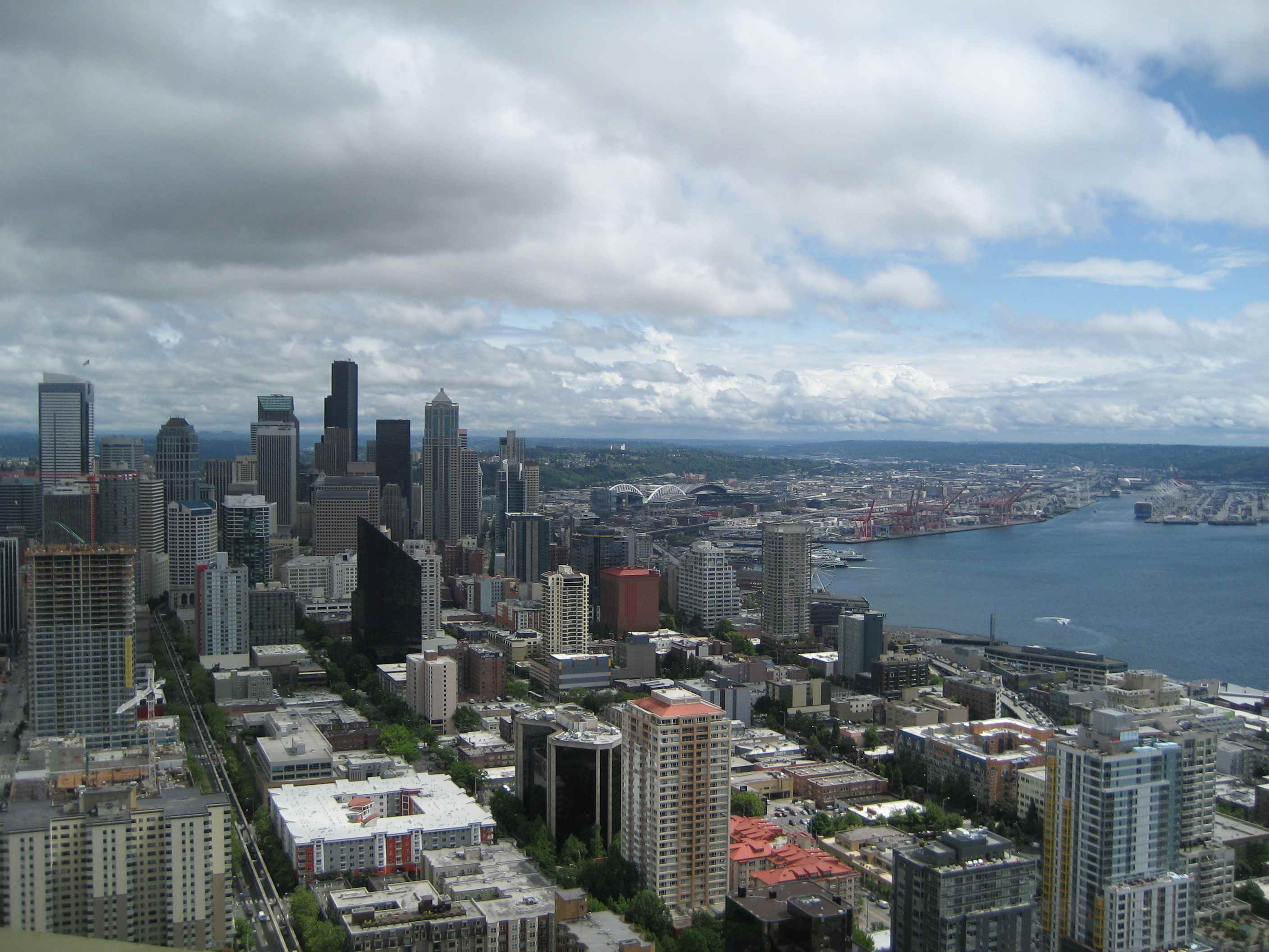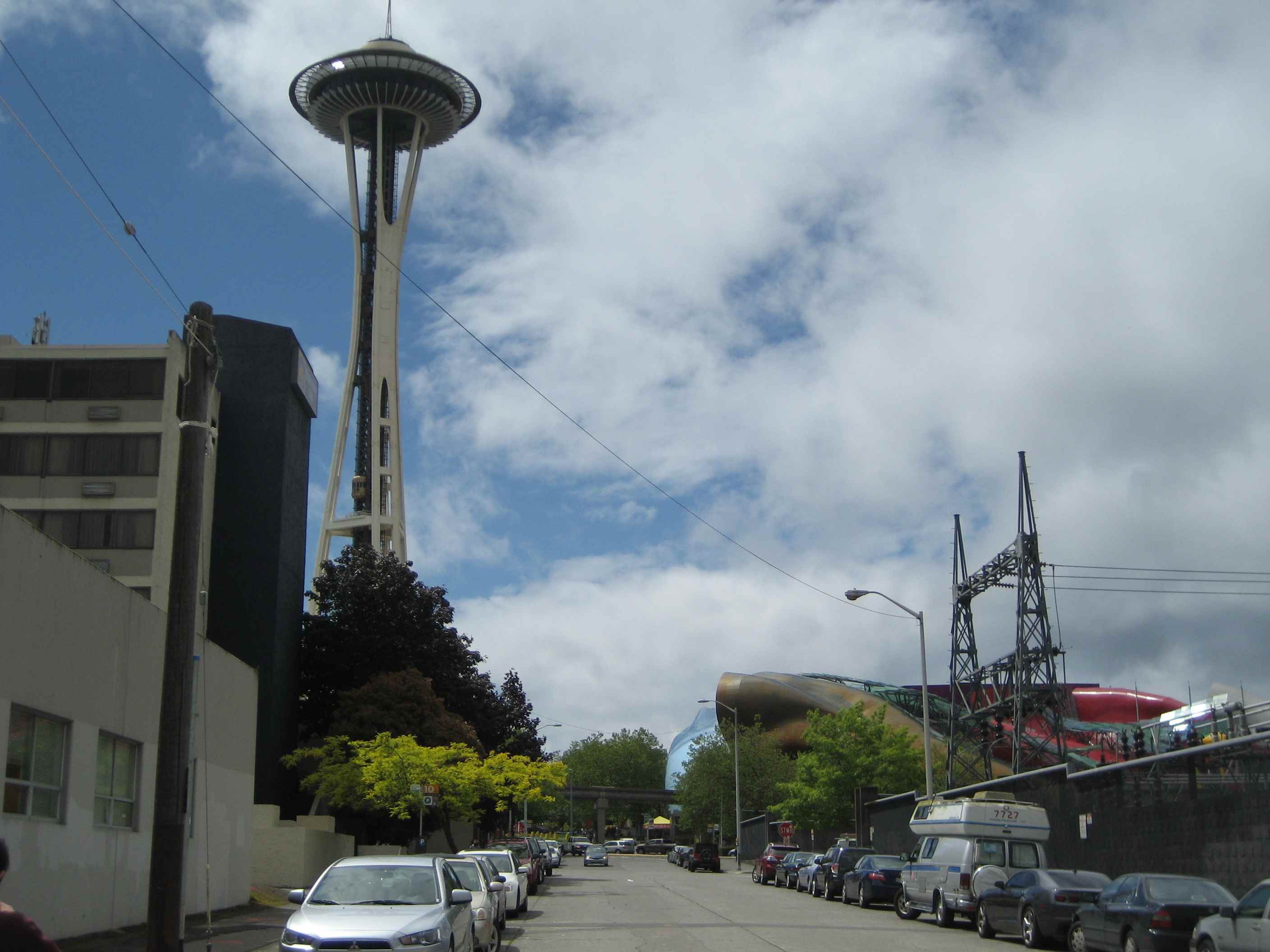 ホテルの朝食は9:30までなので、朝食抜きで、シアトルのランドマークタワー「スペース・ニードル」へ向かいます。