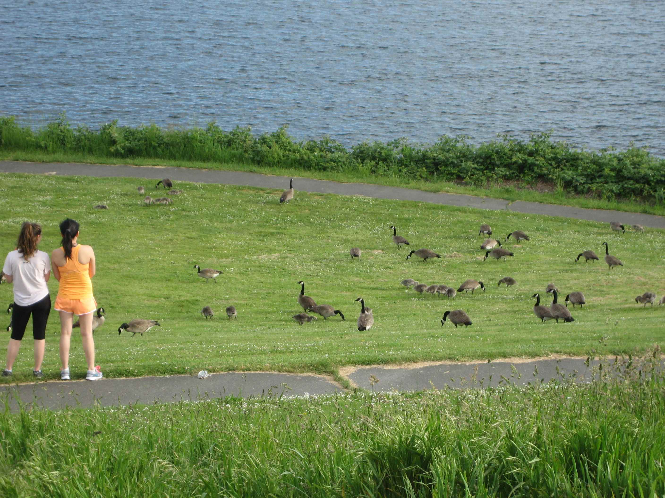 芝生を横切って湖の方へ行こうとすると、芝生は犬の糞が所狭しと落ちています。