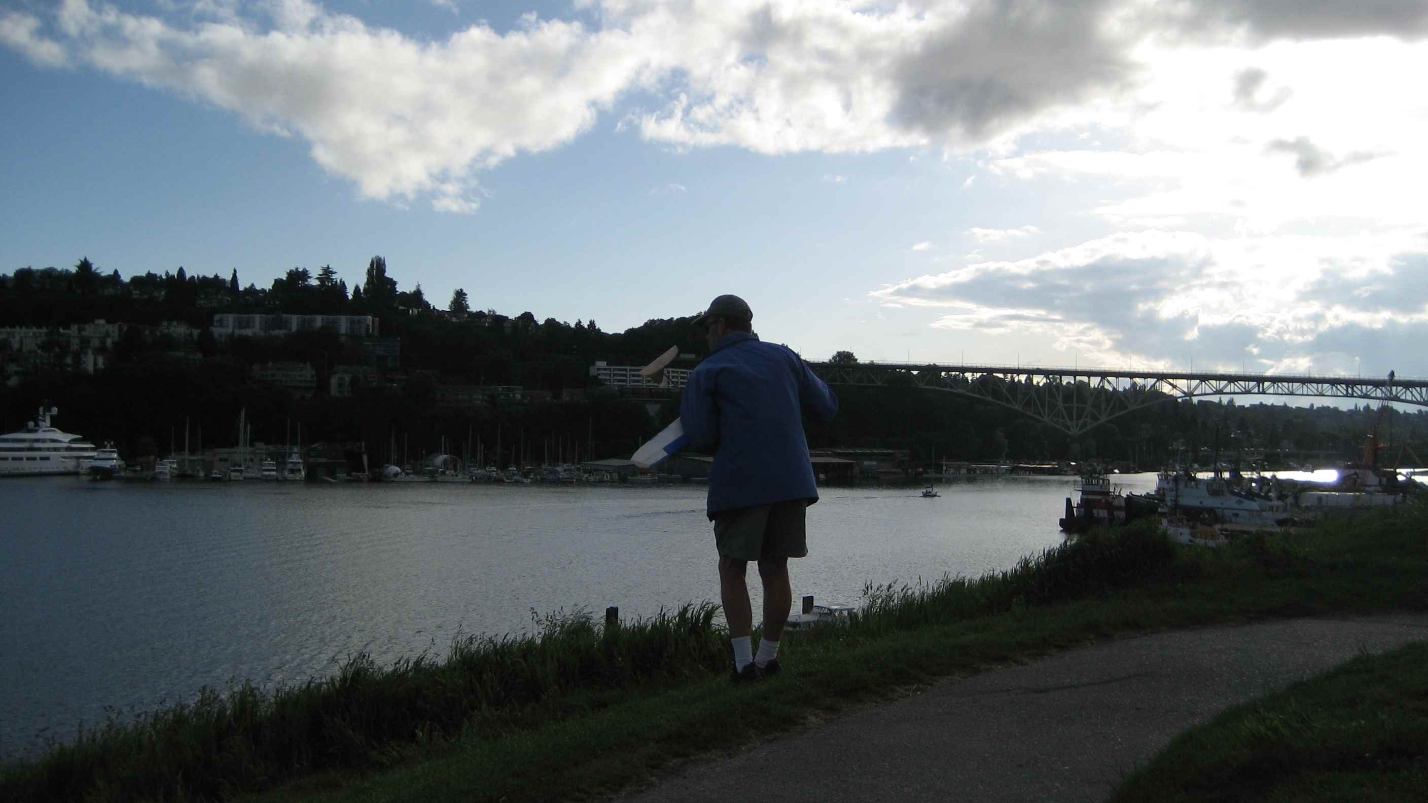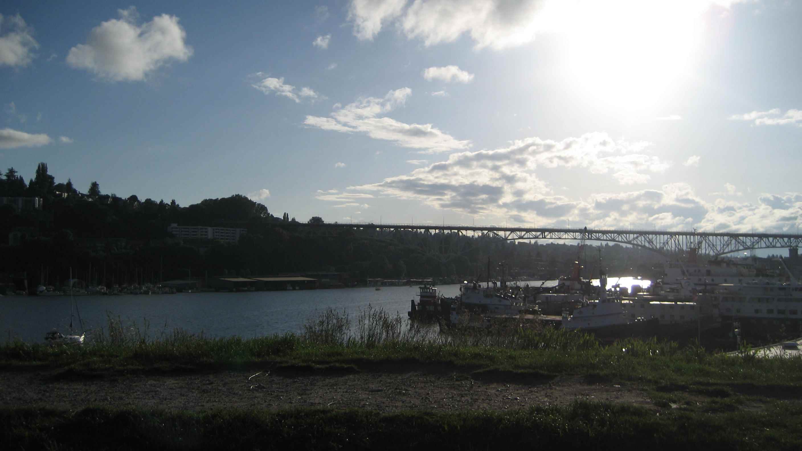 湖のほとりで、対岸のシアトル市街がとても綺麗に見えます。