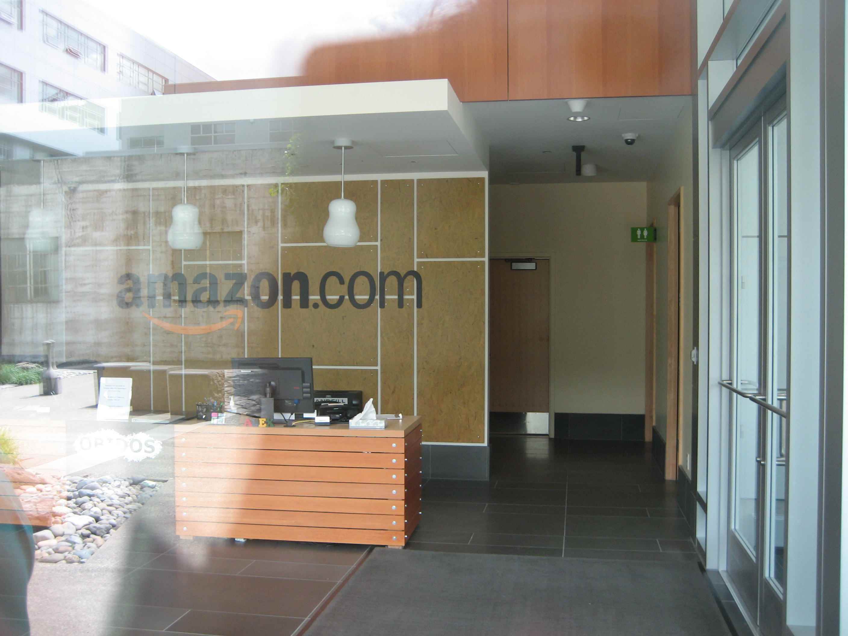 土曜日でお休みでしたから中に入れませんでしたが、ガラスの向こうにamazonの文字が見えます。