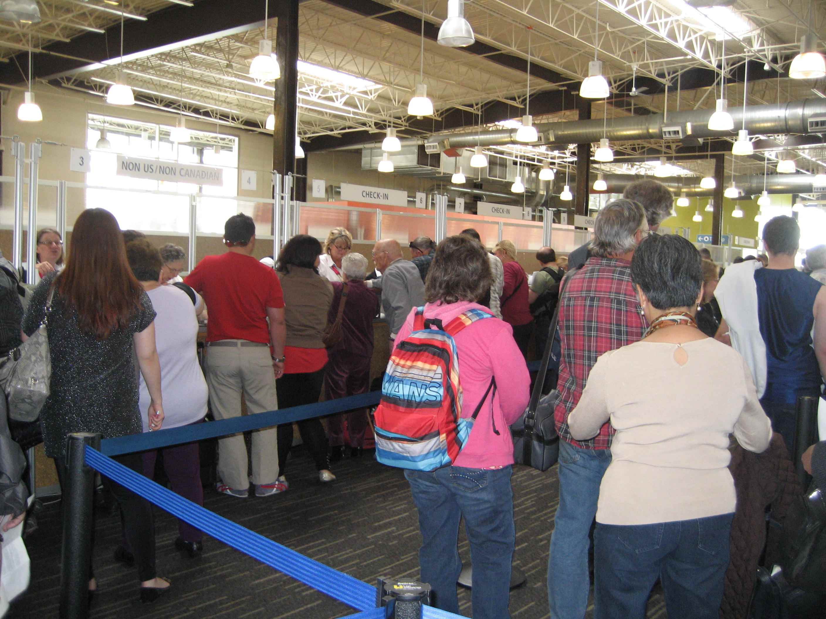 チェックインカウンターはアメリカ人・カナダ人用が12ブースくらいあって、その他用は4ブースです。