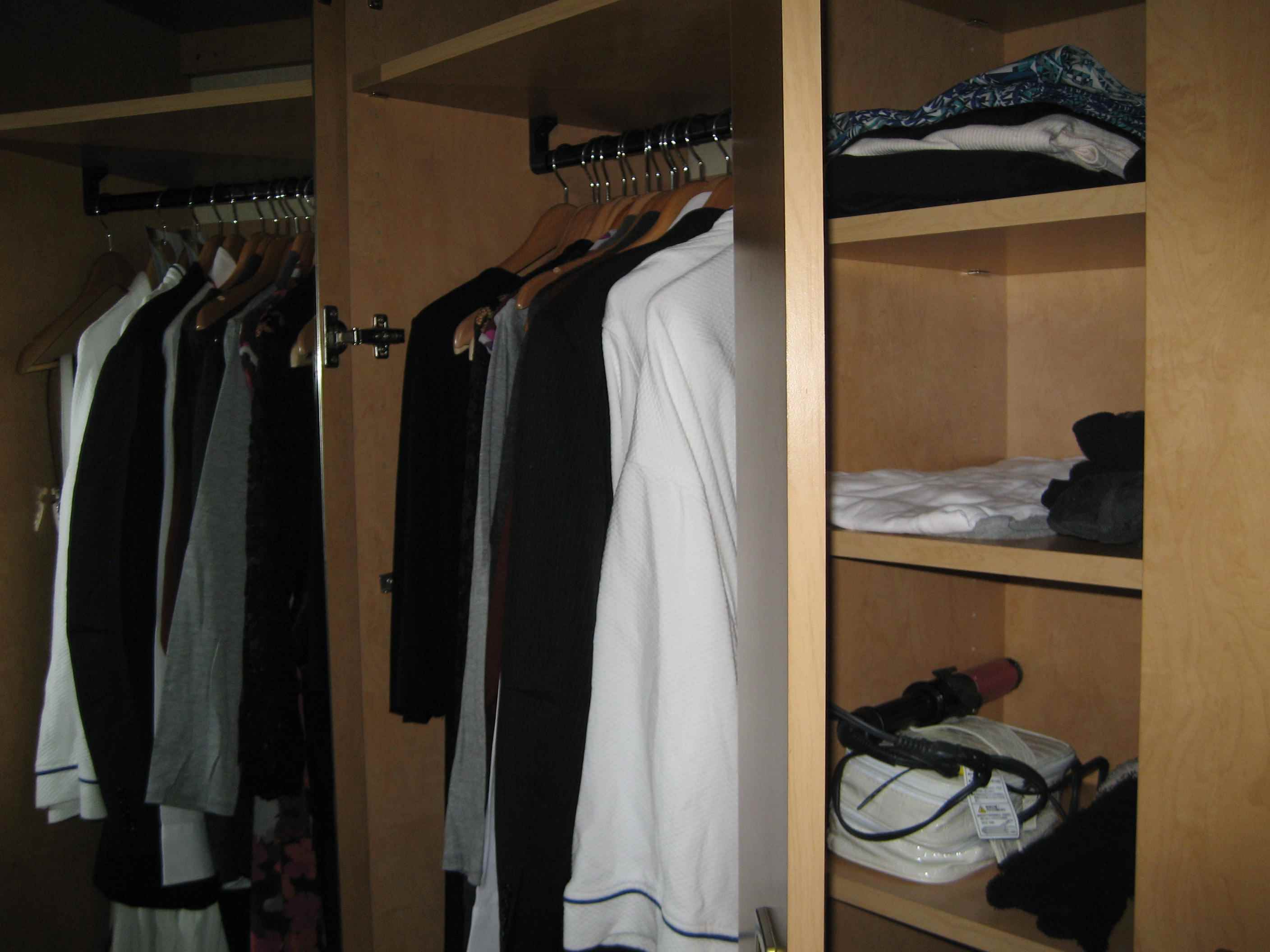 クローゼットも広く(写真以外にもうひとつある)、ベットサイドに引き出しつきのサイドボードもあるので、すべて出すことができました。
