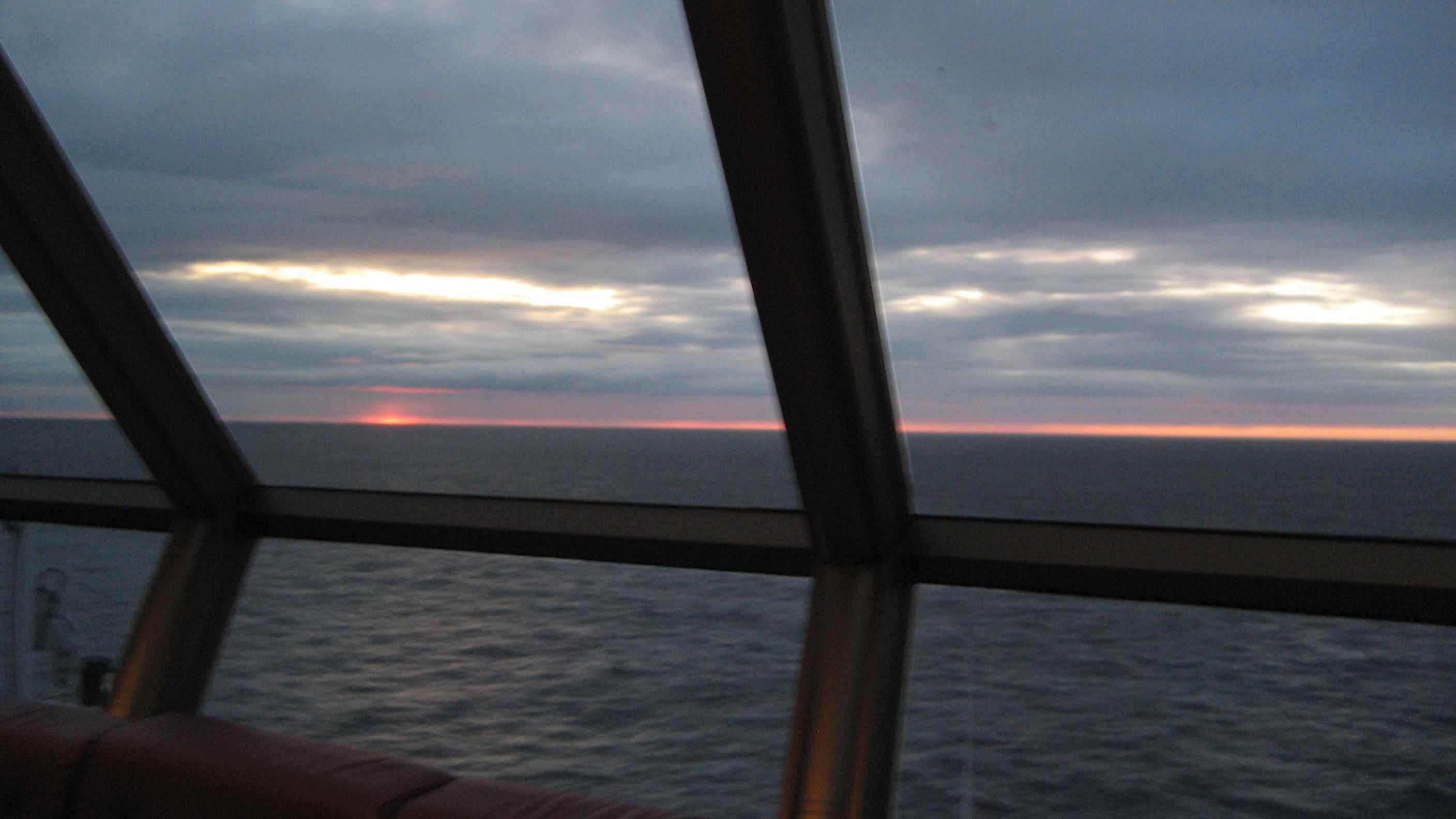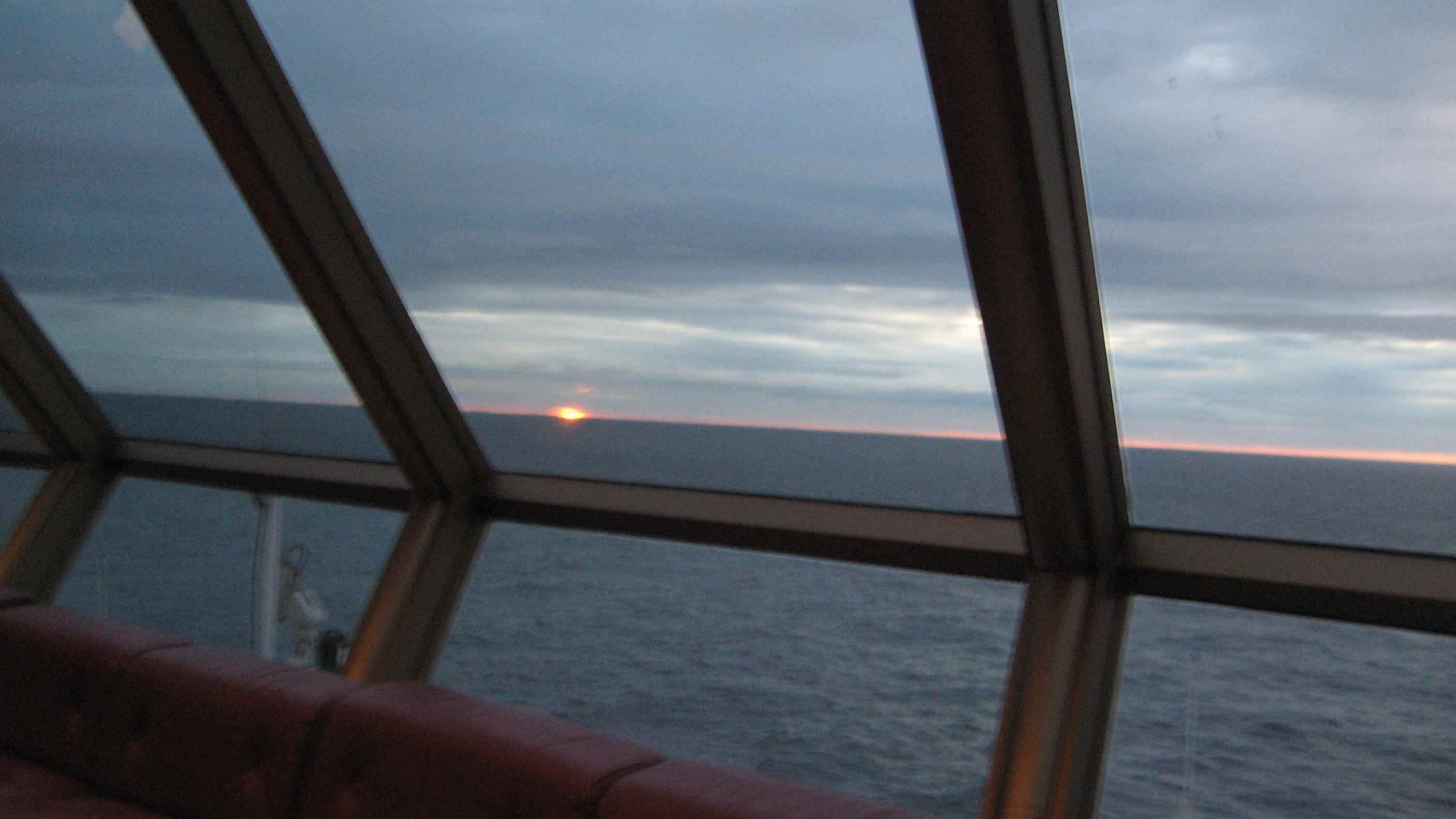 日の出でも見に行こうと6時頃、ひとりで最上階のデッキへ出ました。