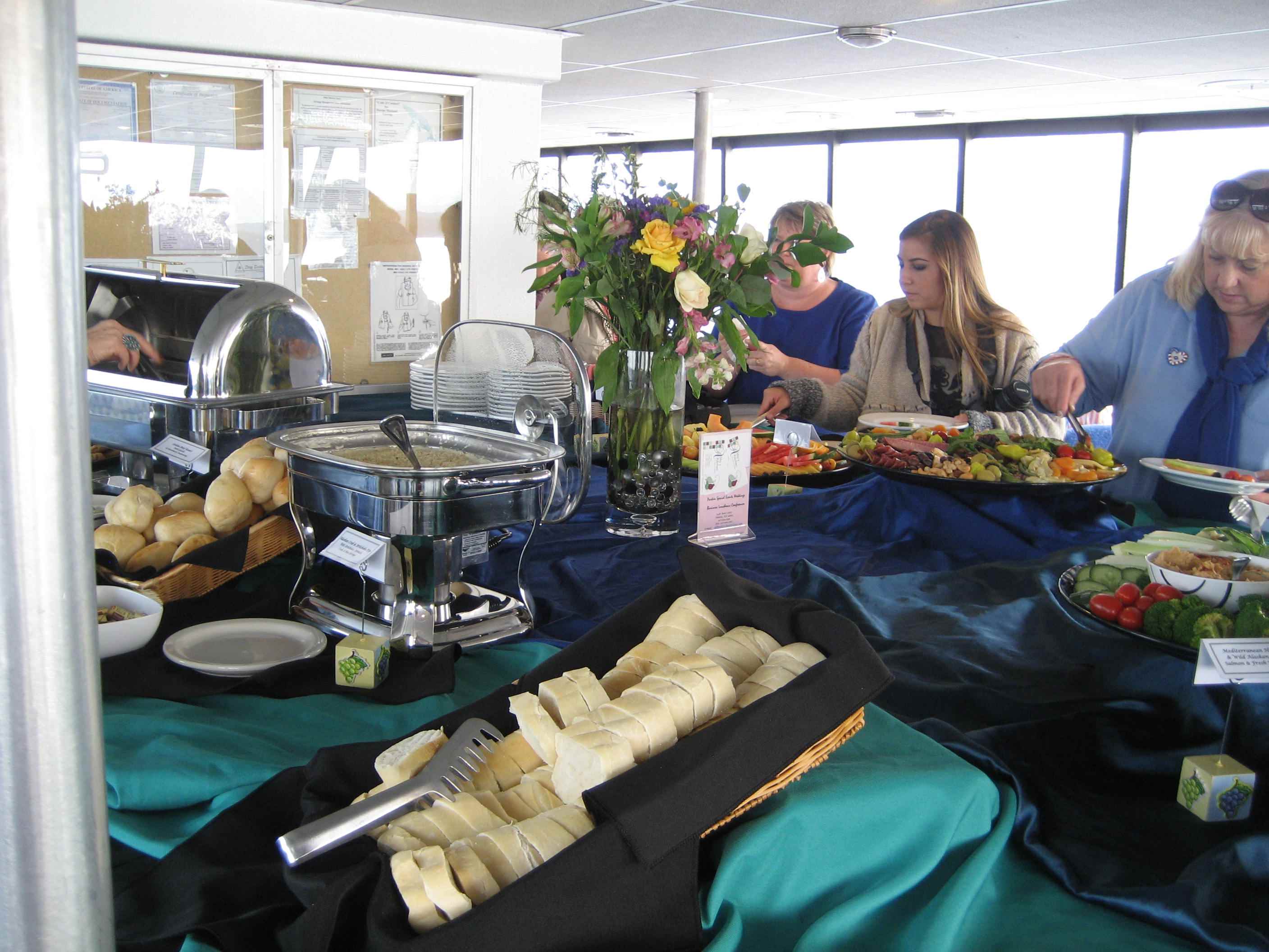 2階建の船で1階にはビュッフェ形式の軽食(と言っても前菜、主菜、デザートと揃った充実したもの)が並んでいます。