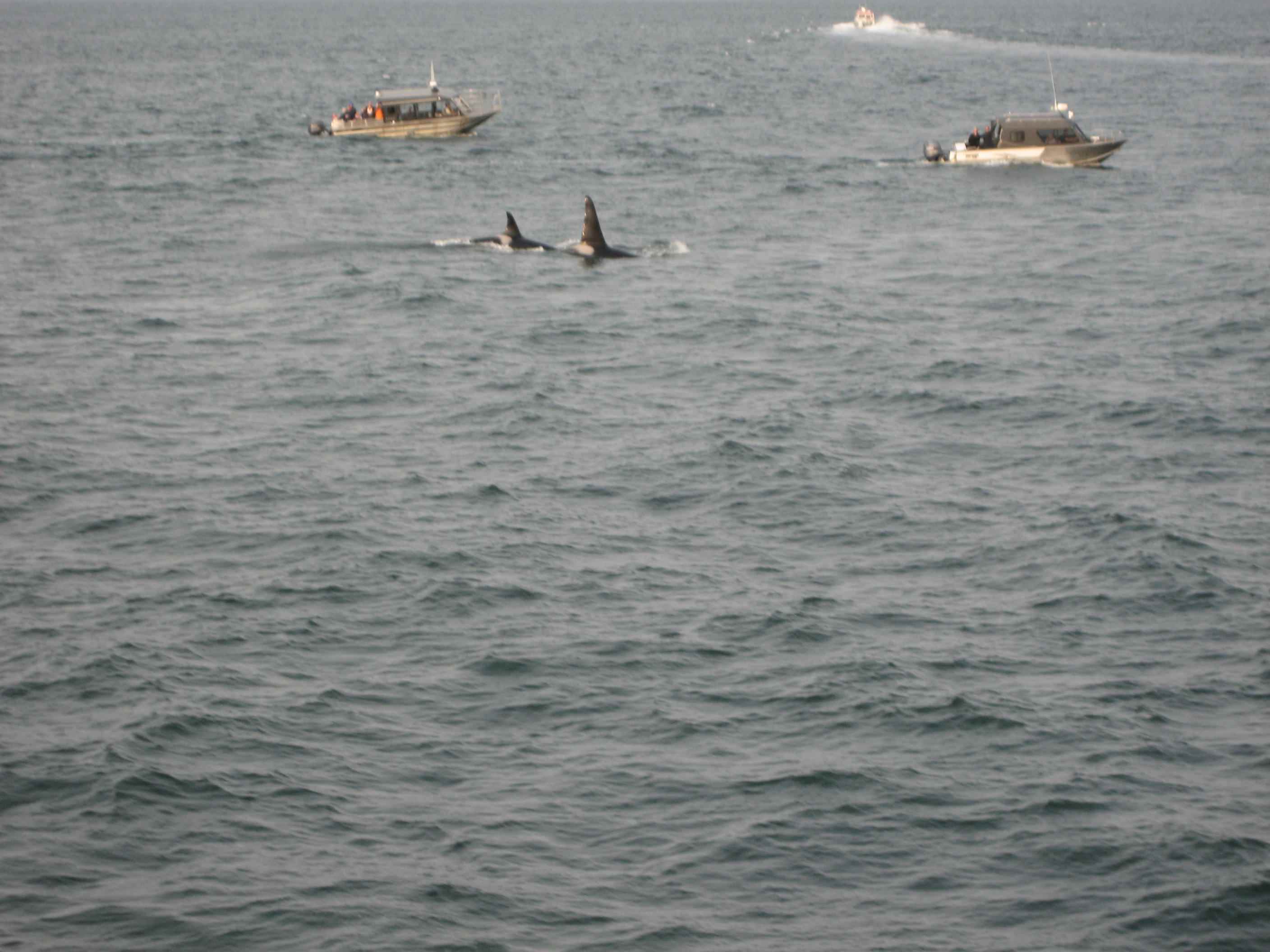 行ってみると、オルカが3頭くらい船のすぐ近くを泳いで行きます。