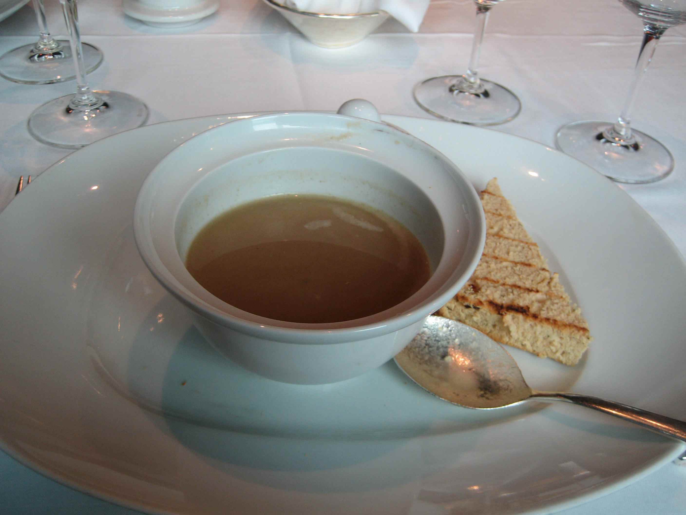 私は野菜のスープをオーダーしましたが、魚介の出汁が濃厚でとても美味しいスープでした。