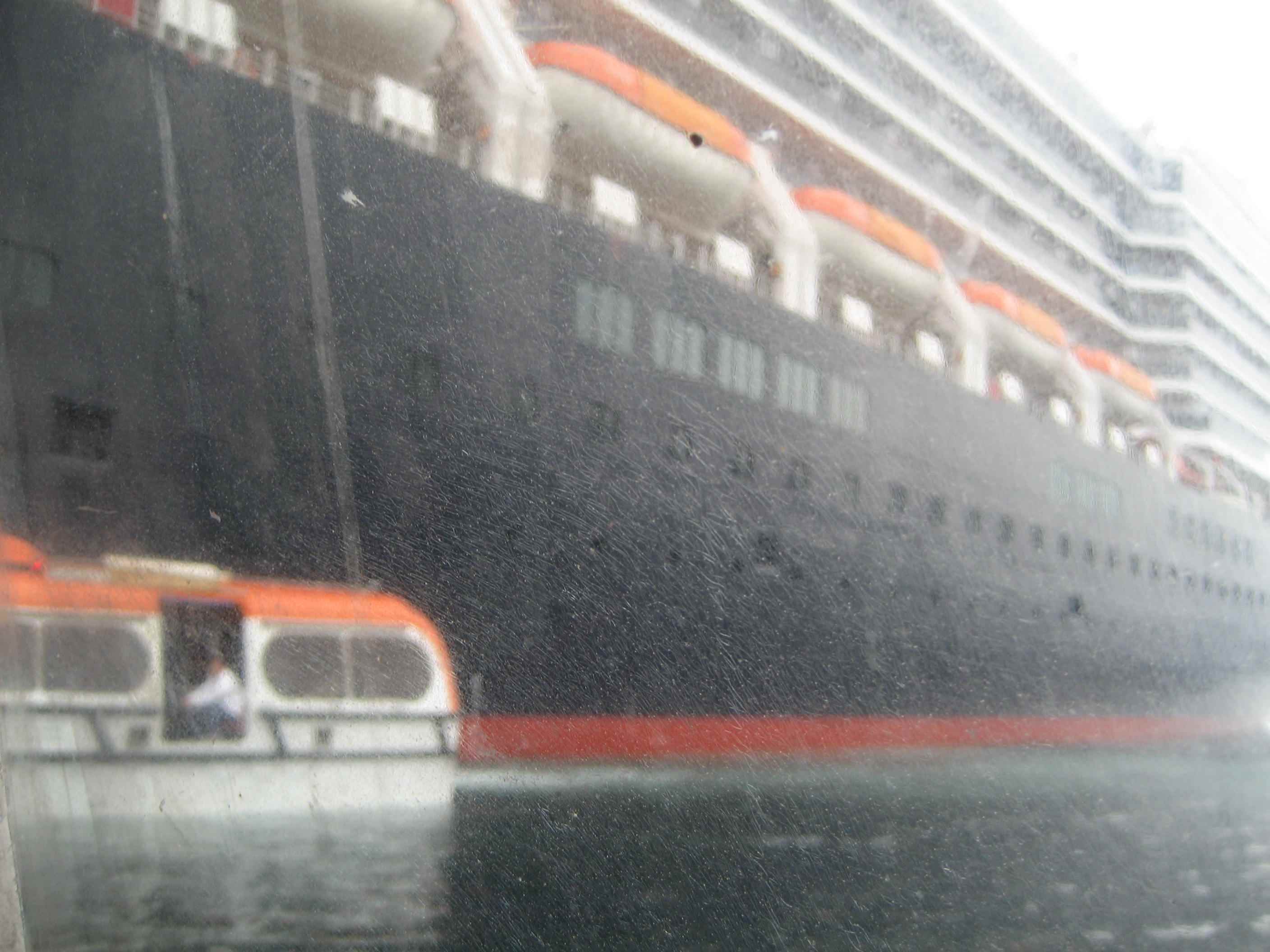 そこで、テンダーボートという小型船で港まで送ってもらいます。