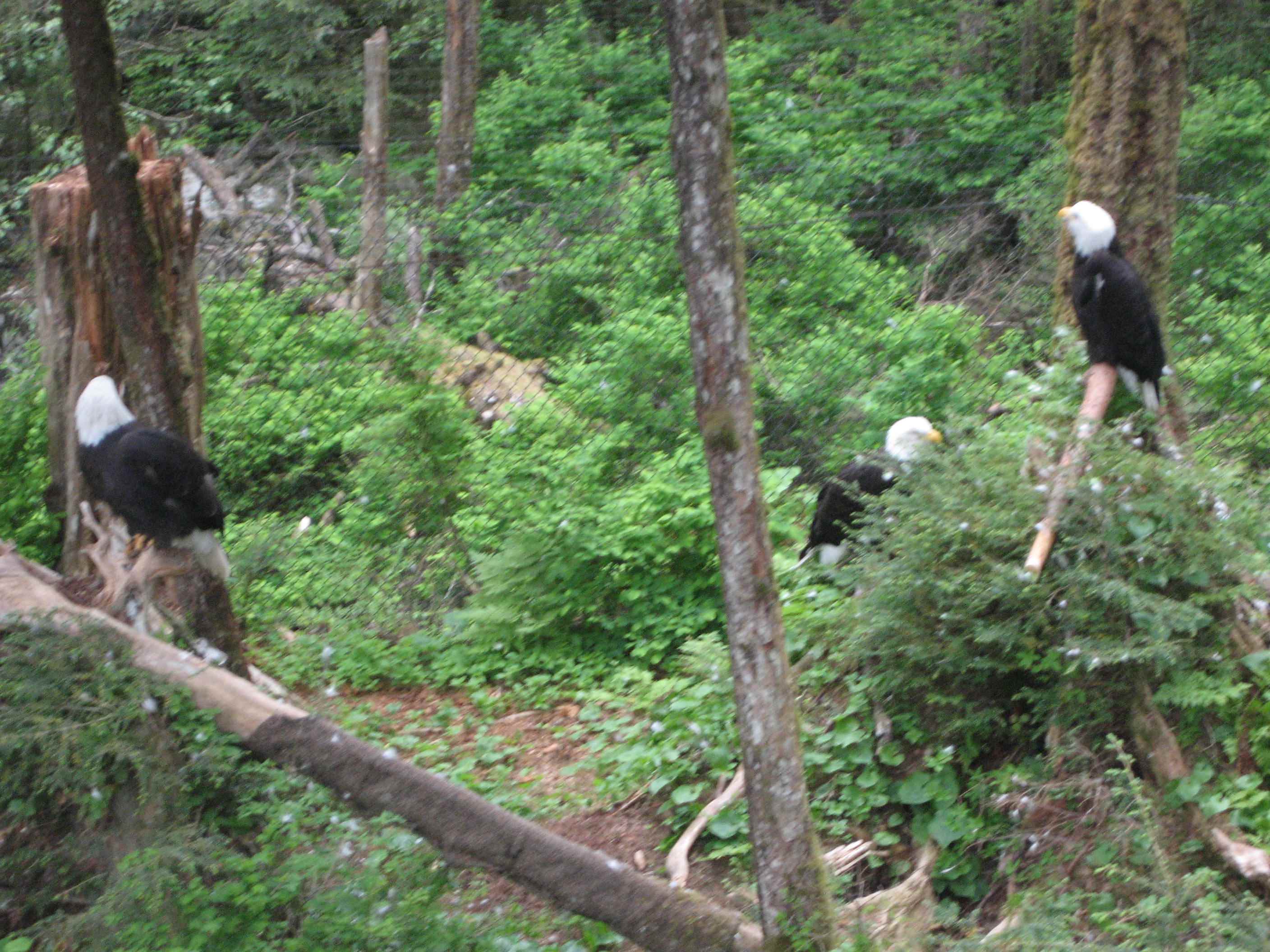 アメリカの国鳥であるハクトウワシはアラスカ沿岸部に生息し、ここにもたくさんいます。