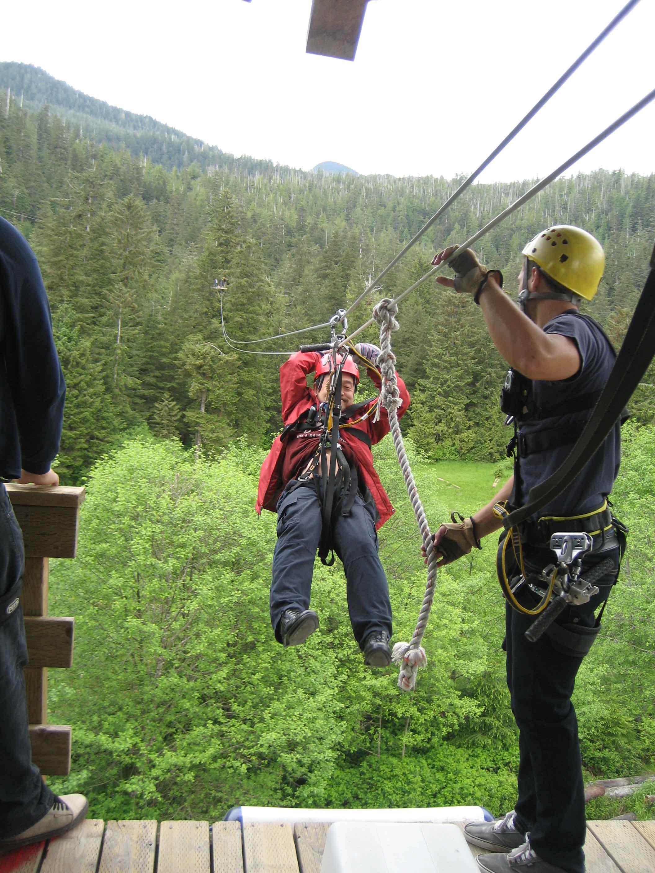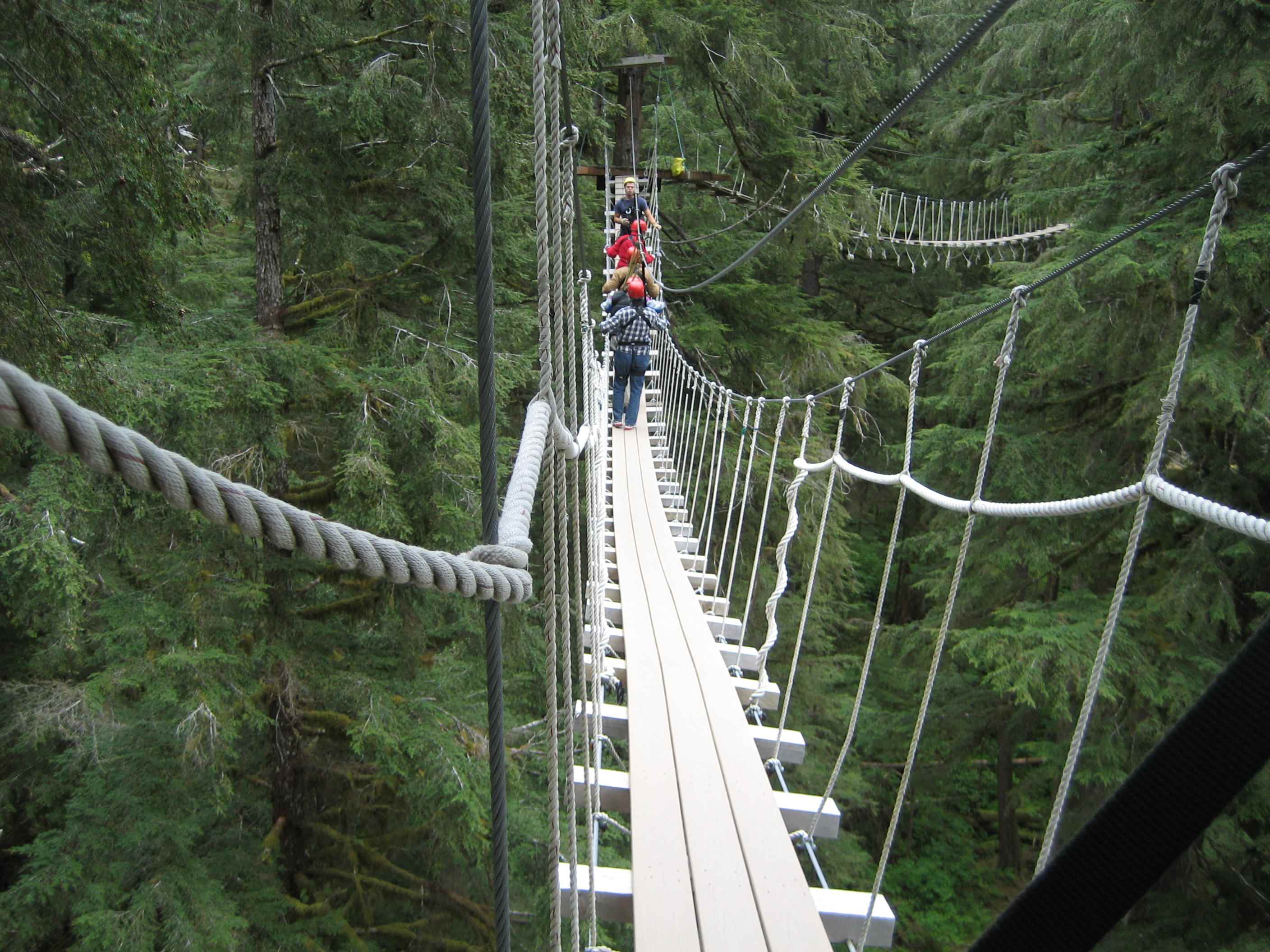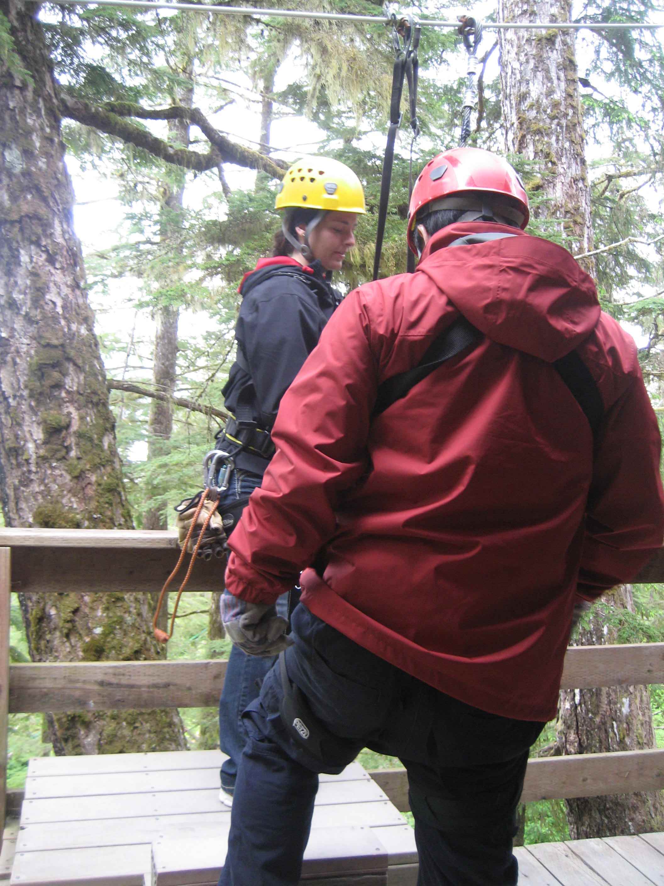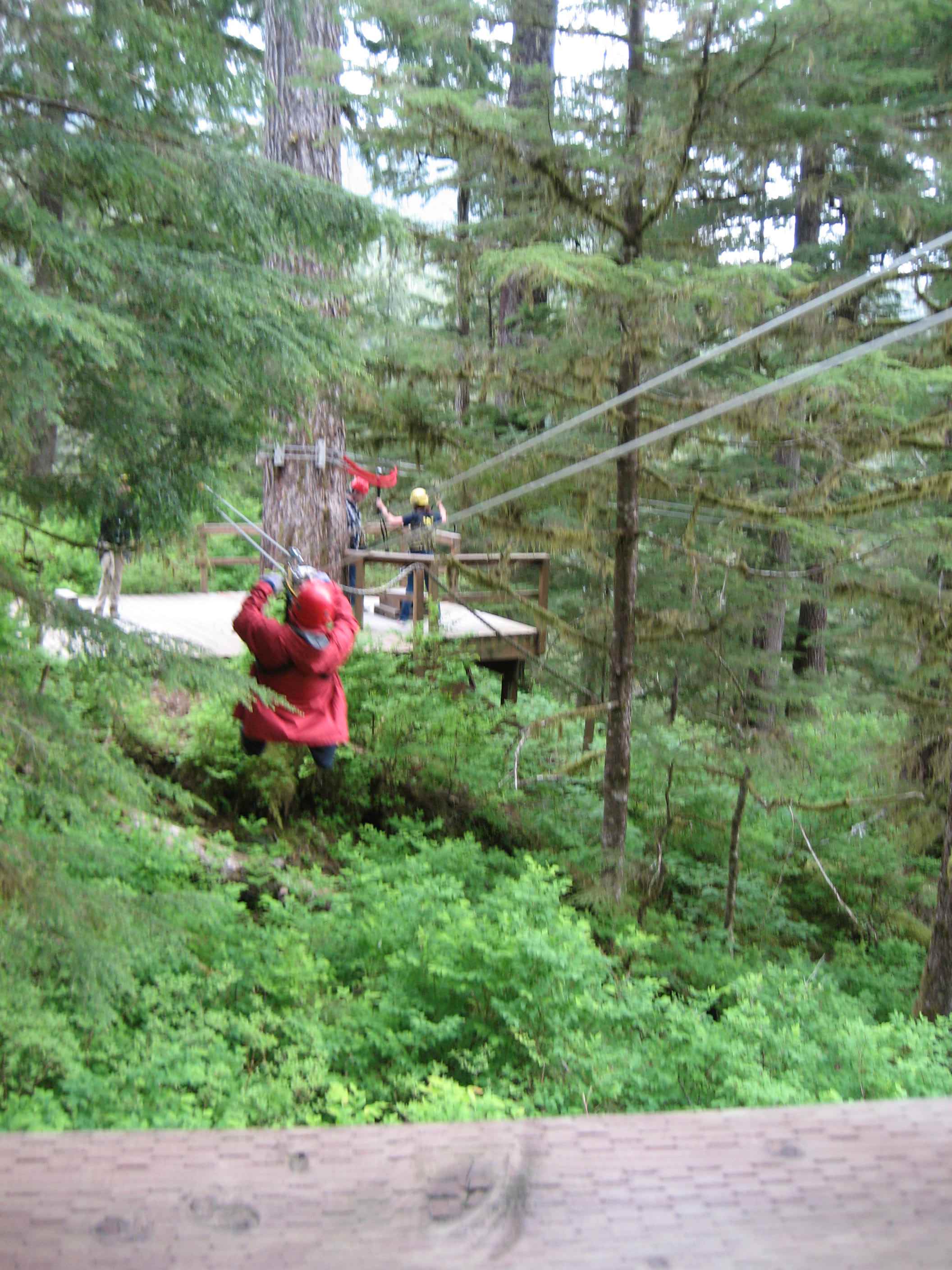 キャノーピーはすごく楽しいし、動いている時間は短いのですが、高い木の上に作られた台の上でチーム全員が渡るのを待たなければいけません。