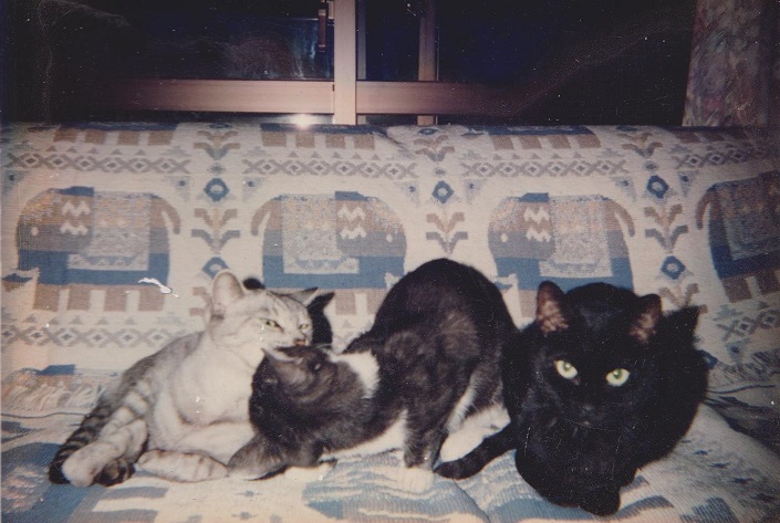 真ん中が「ミミちゃん」で、左の「モモ」をナメていて後頭部しか写っていません。