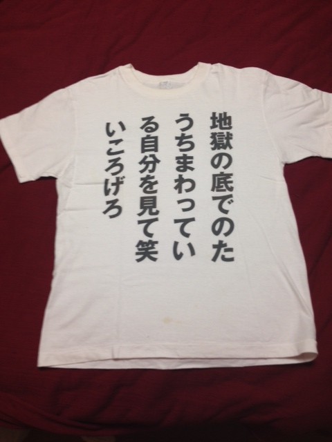 ふと、思いついたのは、数年前、「死ぬ気が萎えるTシャツ」を着て歩くことで自殺防止をアピールするイベントがあったとき、夫が自分のTシャツにプリントした言葉です。