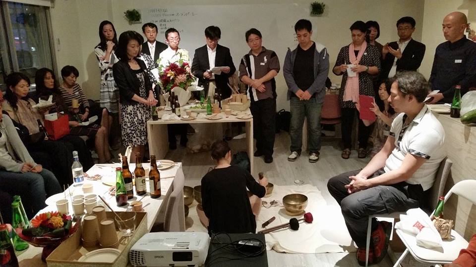 17時~23時の間に、Blossomについてのプレゼンテーションを2回と軽いワークショップ2回、シンギングボウルの演奏会などを行いました。