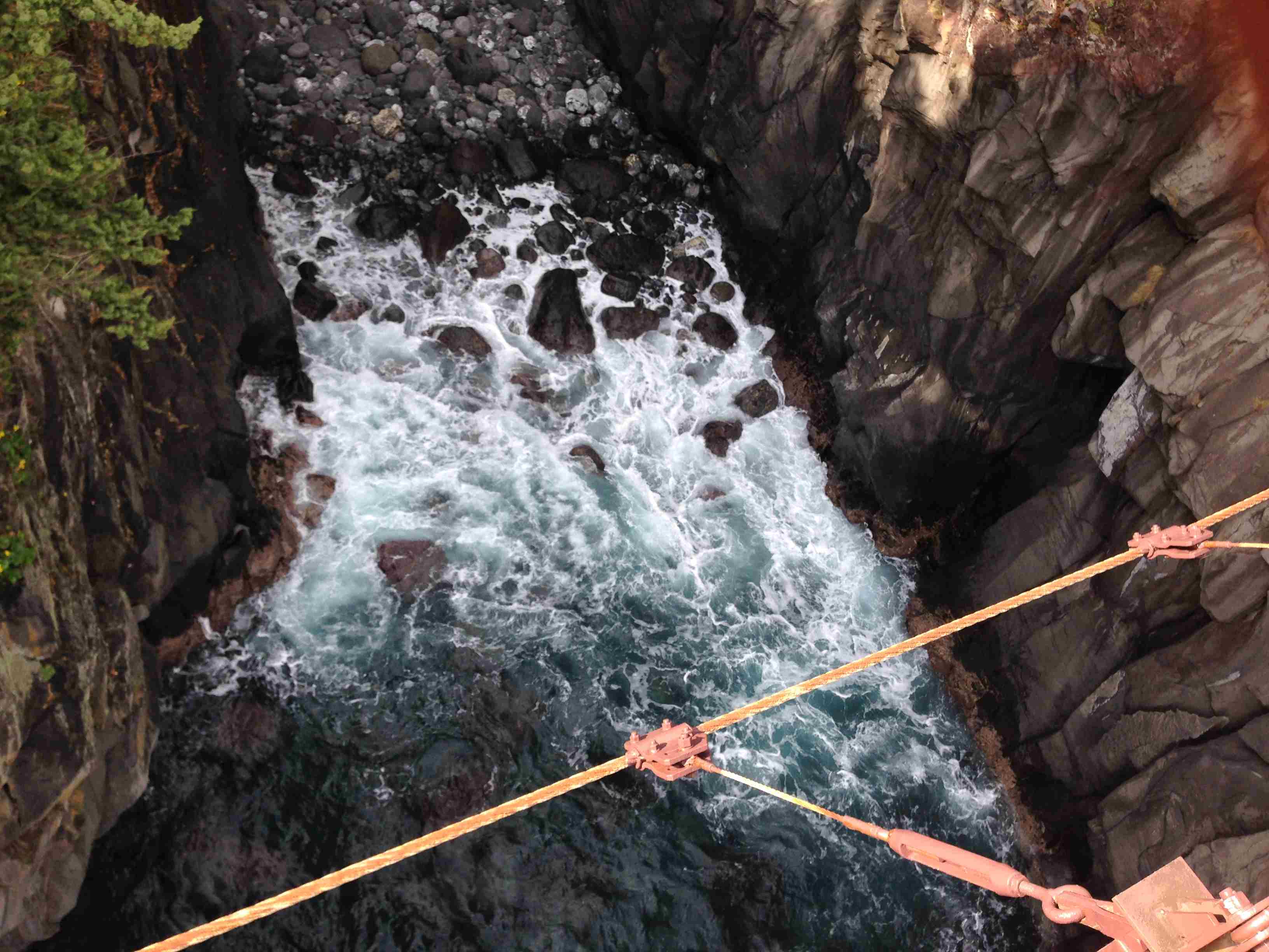 吊橋までは約25分くらいで、橋の下がえぐれた入江になっていて、確かにスリルがあります。