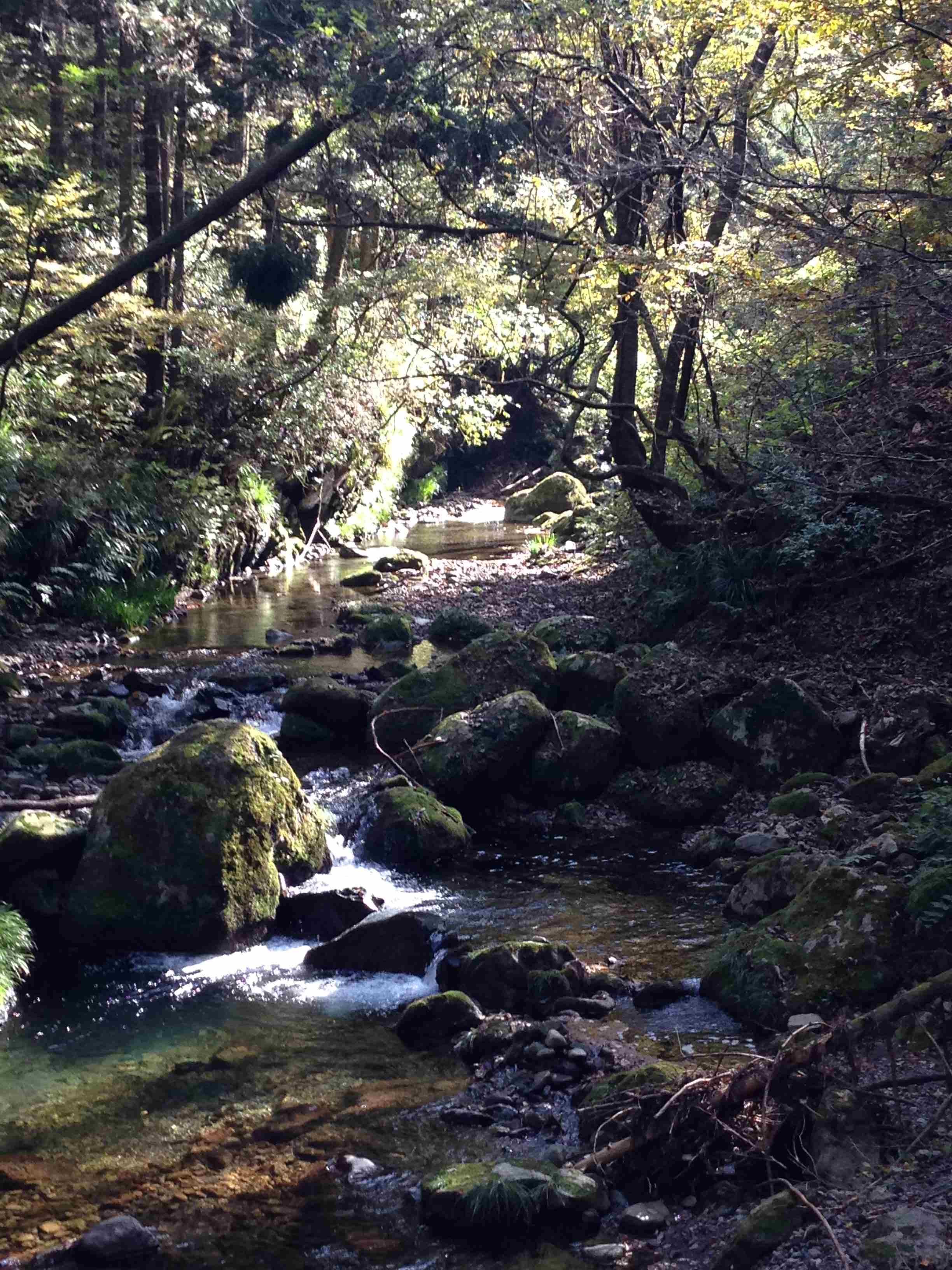 お天気が良かったので、川の水や舞い落ちる木の葉が太陽に輝いて、とても綺麗でした。