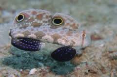 海底の岩にあいた穴から顔を覗かせている様子が、確かにカエルのようです。