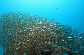そして、サンゴの周りに何種類かの「テンジクダイ」が大きな群れをつくっています。