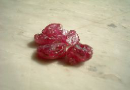 加熱前の原石は、よく見ると赤っぽいけど、あまり綺麗には見えませんよね。